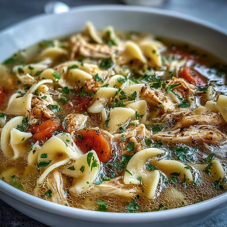 Save to Pinterest There's something about the sound of chicken hitting hot broth that signals comfort is on the way. My mom used to make this soup on those gray afternoons when we'd come home from school, and the kitchen would fill with this gentle warmth that had nothing to do with the stove. Years later, I realized it wasn't just nostalgia—it was the perfect balance of simple ingredients creating something that tastes like home in a bowl. This chicken and noodle soup has become my go-to when I need to feed people without fuss, or when I need to feed myself the same way.