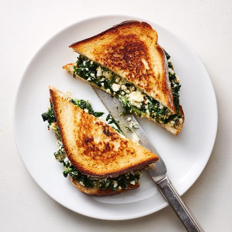 Save to Pinterest The smell of garlic hitting olive oil always pulls me into the kitchen, no matter what I was doing in the other room. This grilled cheese happened on one of those rainy afternoons when regular comfort food just was not going to cut it. I had a tub of feta sitting in the fridge and some spinach that needed using, and honestly, the result changed how I think about sandwich making forever.
