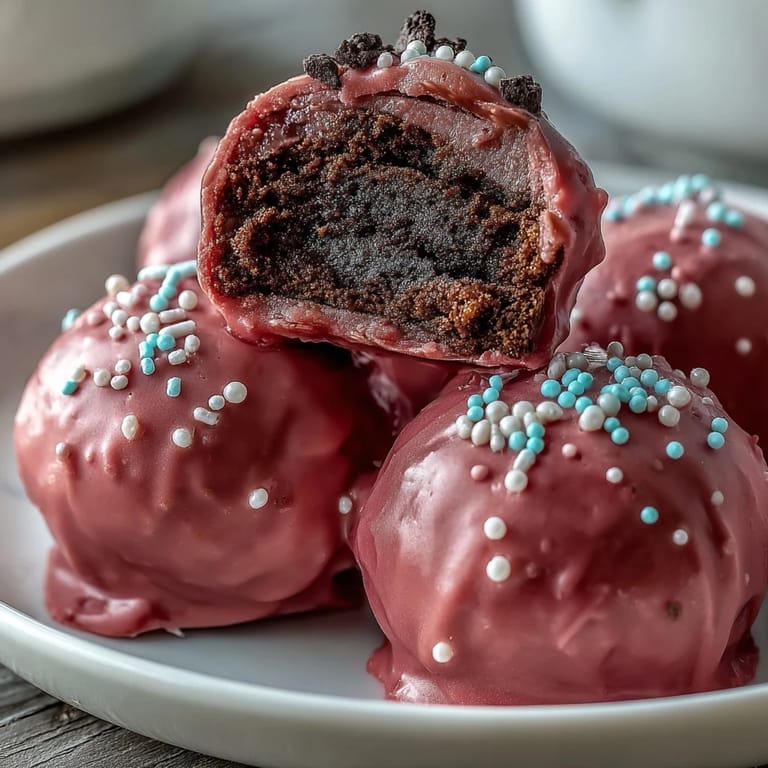 Save to Pinterest My niece showed up one afternoon with a bag of Oreos and a block of cream cheese, insisting we make something fun. I was skeptical at first, but within minutes we were elbow-deep in cookie crumbs, laughing at the mess we'd made on the counter. The pink candy coating was her idea, a bold choice that turned simple truffles into something that looked like it came from a boutique bakery. When we bit into the first one, that satisfying snap of the shell followed by the creamy chocolate center made us both go silent for a second. It was one of those rare kitchen moments where something so easy tasted so impressive.
