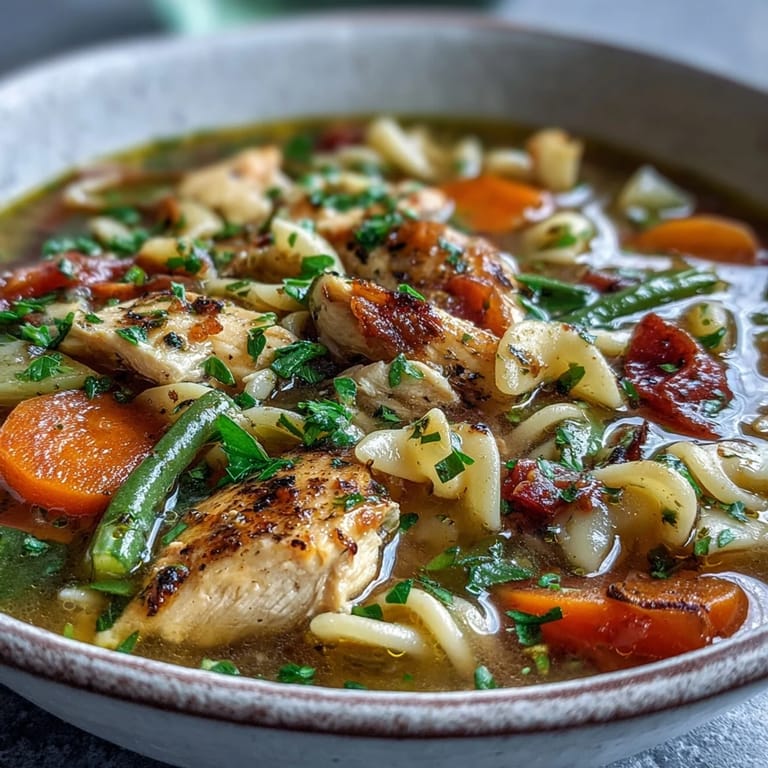 Save to Pinterest There's something about a pot of soup simmering on the stove that makes a kitchen feel like home. I discovered this chicken and pasta soup on a chilly evening when my neighbor dropped off a bag of vegetables from her garden, and I had chicken thawing on the counter. The combination happened almost by accident, but it became the soup I now make whenever someone needs comfort in a bowl.