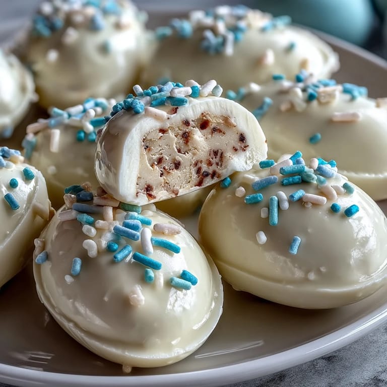 Save to Pinterest The first time I made these White Chocolate Peanut Butter Easter Eggs, I was drawn in by the cheerful sprinkles and the promise of a creamy center. The kitchen was filled with the aroma of melted white chocolate, and my curiosity peaked as I dipped each homemade egg, hoping the coating would turn out smooth. I always love when treats come together quickly, especially ones with a playful theme. There was an undeniable sense of anticipation as I lined up the eggs, wondering which color sprinkle would end up on top. These festive sweets instantly added a pop of fun to my counter, like little edible Easter decorations.